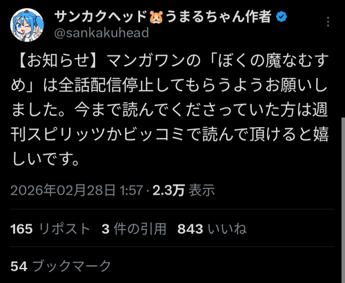 哲学ニュースnwk02/28 09:05 【闇深】小学館編集者、担当漫画家の性加害を把握しながら被害者に口止め示談を提案→別名義で新連載まで開始していたと判明渉…示談金150万円支払いの条件も和解は成立せず
