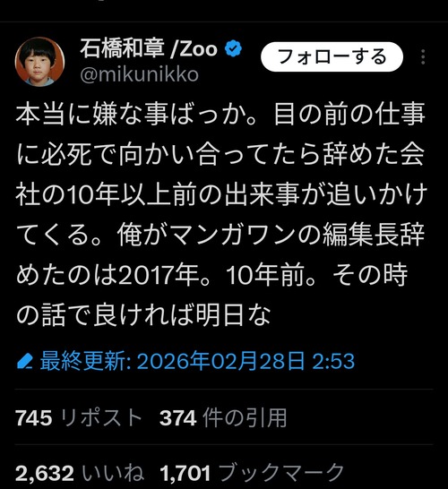 【悲報】マンガワン元編集長、お気持ち表明するも炎上→さらに声明を出す事態にwwww