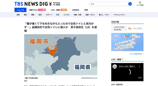 男子高校生(18)「お腹痛くて下向きながらトイレ入ったら女子便所だった」盗撮疑いで逮捕