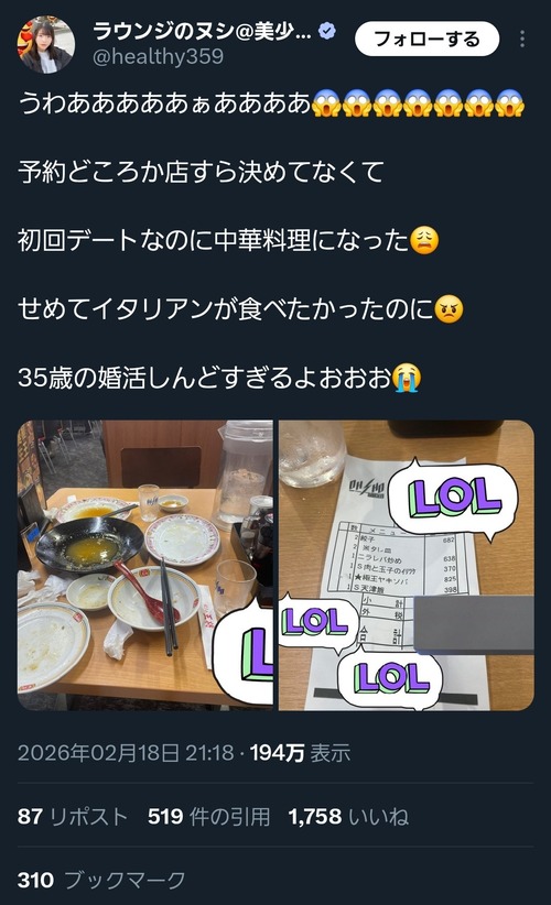 【悲報】婚活女子、初デートで「餃子の王将」に連れていかれて疲れてしまうwwww