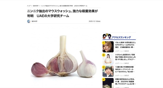 ニンニク抽出物のマウスウォッシュ、強力な殺菌効果が判明