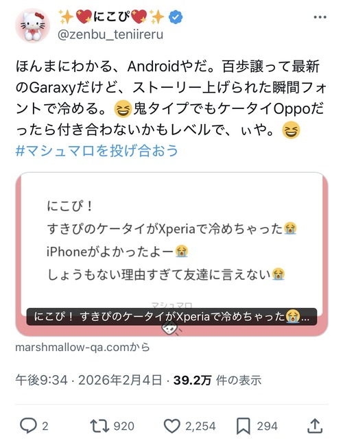 【悲報】女の子「好きピのスマホがXperiaで冷めた…iPhone以外無理…」