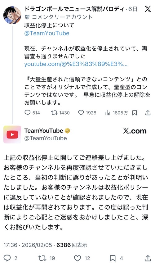 【悲報】ドラゴボでニュース解説、収益化停止が解除されて復活するwwww