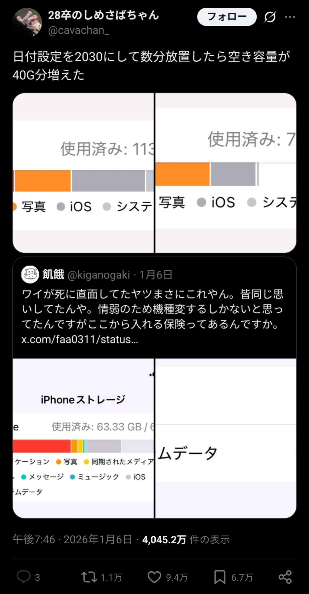 【悲報】iPhoneの溜まり続けるシステムキャッシュを消す裏技がバズる→X民のiPhone、大量に文鎮化する