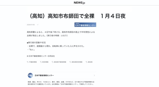【高知】道路脇から全裸のおじさんが「ねぇ」と登場