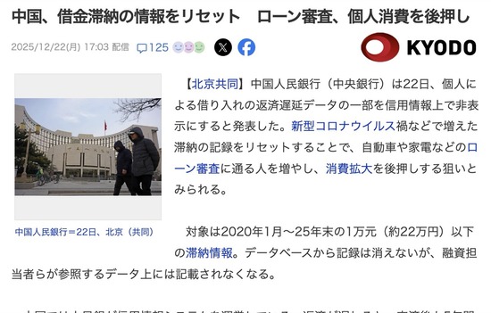 【朗報】中国さん、借金の滞納情報をリセットする