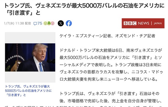 トランプ大統領「私に国際法は必要ない」「私自身の道徳観。私自身の心。それが私を止められる唯一のものだ」