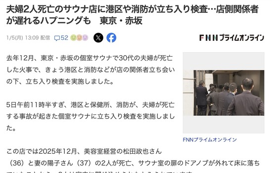 【悲報】赤坂の死のサウナさん、立ち入り検査に遅刻する