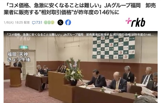 JA「農家に値段の高くなったコメの値で支払っているので、すぐに安くは難しい」