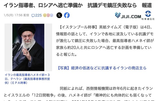 【悲報】イラン最高指導者ら20人、ロシア逃亡準備か