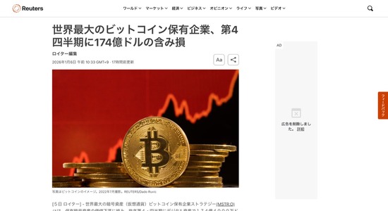 【悲報】世界最大のビットコイン保有会社、174億ドル(約2兆7000億円)の含み損