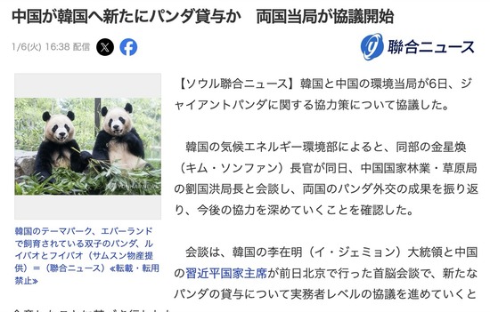 中国、韓国にパンダを貸与へ