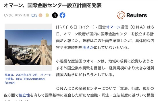 オマーン、国際金融センター設立計画を発表