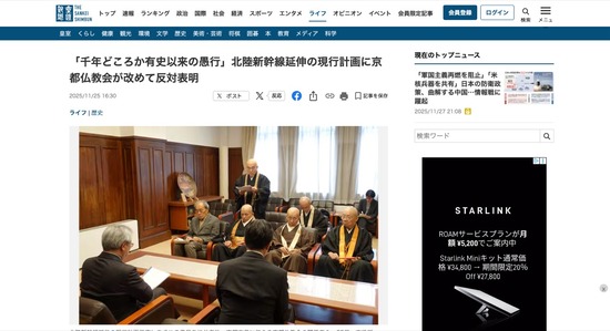 京都仏教会、北陸新幹線の延伸を「千年どころか有史以来の愚行」と非難