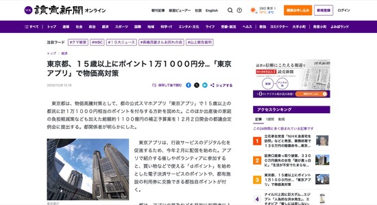 東京都、15歳以上にポイント1万1000円分をプレゼントへ