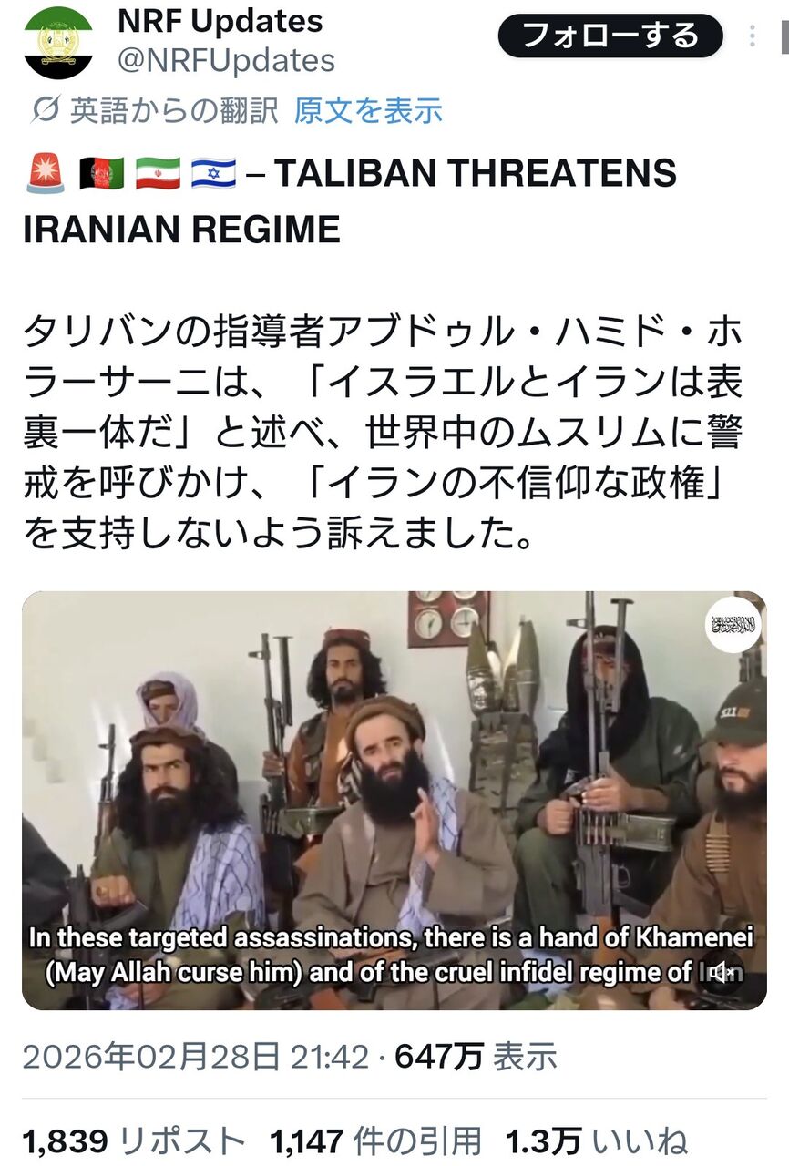 【悲報】タリバンまでイランを非難