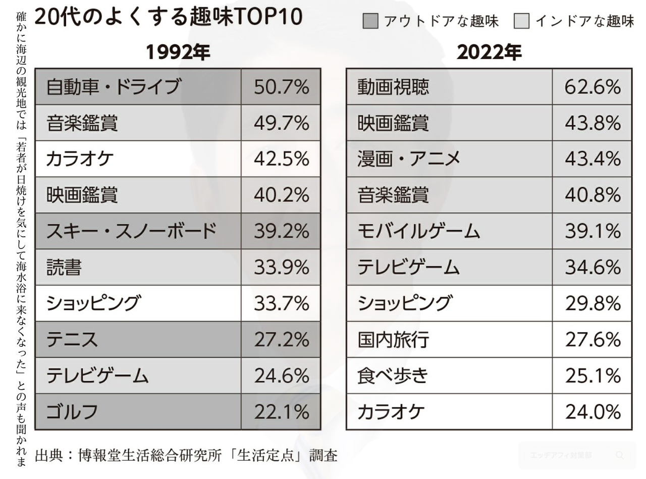 「20代の趣味」、30年間でめちゃくちゃ変わるwwww