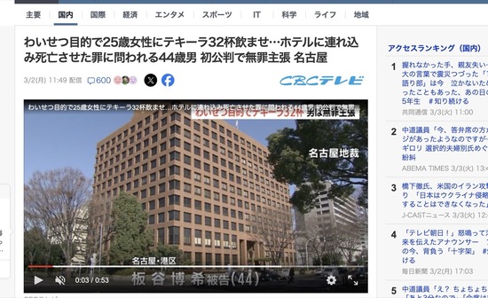 女性にテキーラ32杯を飲ませ殺した男、無罪を主張「猥褻目的はなかった!介抱しただけ!」
