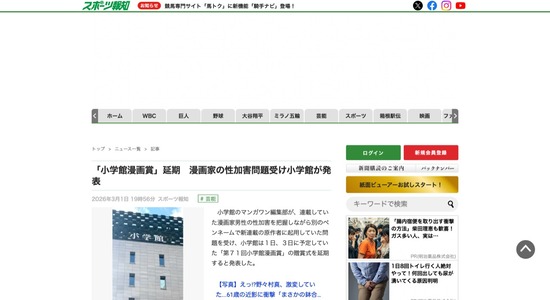 【マンガワン問題】小学館、性加害問題で「小学館漫画賞」延期を発表