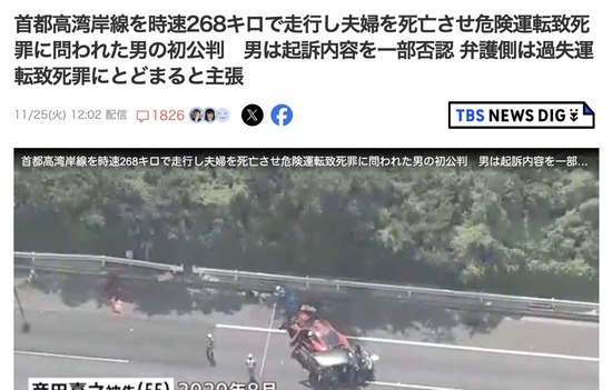ポルシェで時速268キロ出して夫婦を死なせた男「制御困難ではなかった」