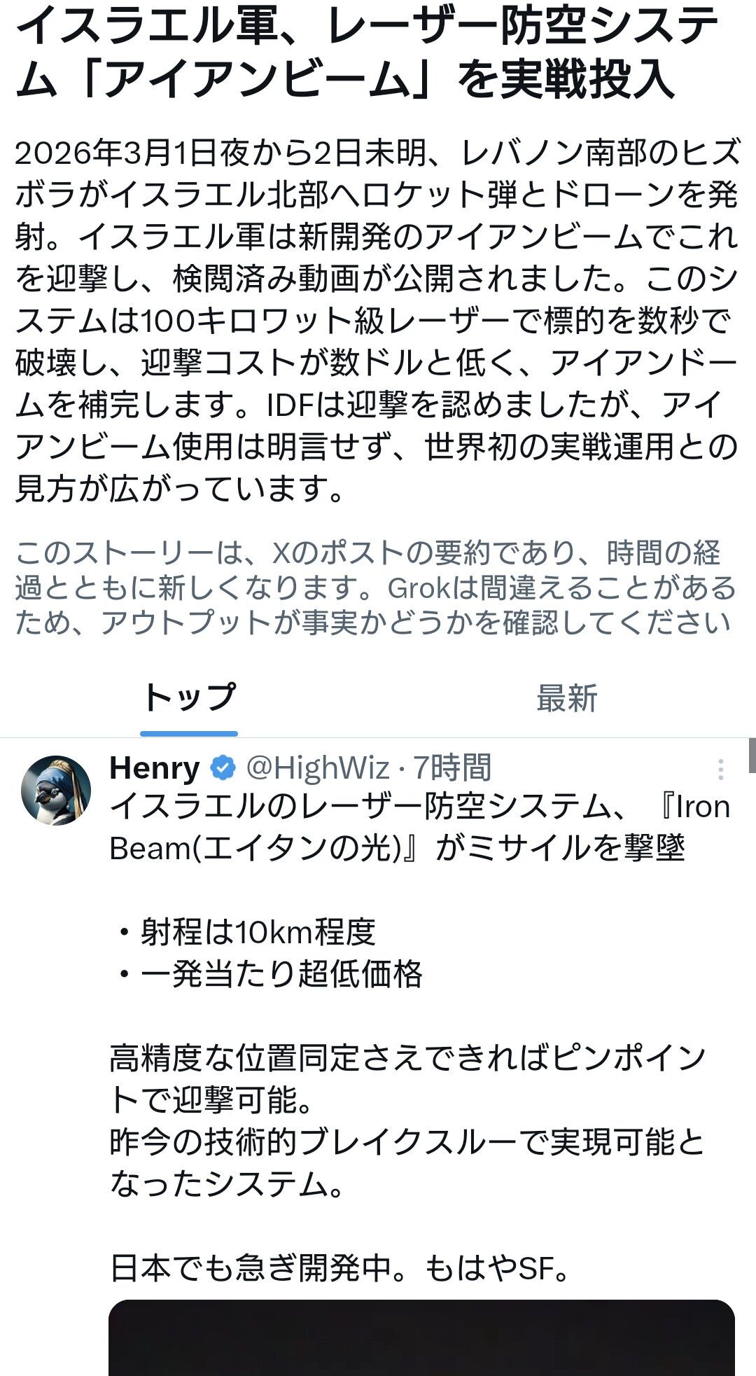 イスラエル軍、「アイアンビーム」を実戦投入