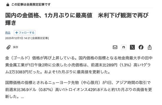金価格が最高値を更新 ゴールド1グラムは2万3387円に