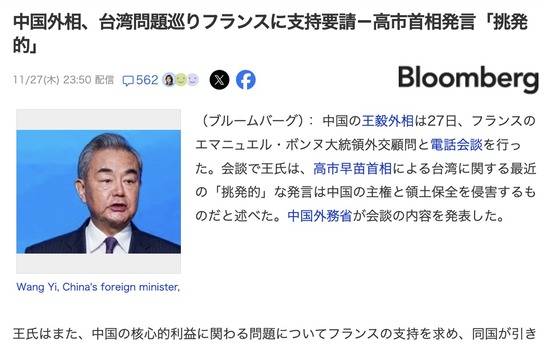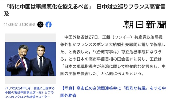 中国「日本が〜」フランスさん「中国は事態悪化を控えるべき」