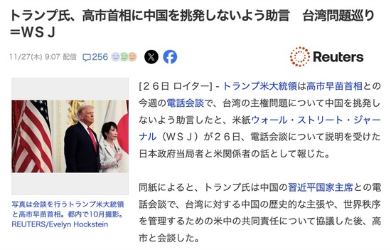 【台湾発言】高市首相、やっぱりトランプ大統領からお叱りを受けていたもよう