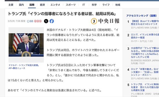 【悲報】米国、イランのNHKテヘラン支局長を爆撃