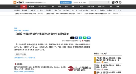 韓国大統領、統一教会の解散命令検討を指示か「日本では解散命令が出ている」