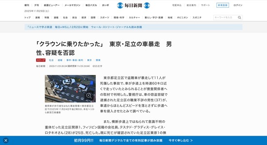 東京・足立の暴走ひき逃げ犯「クラウンに乗りたかった」と容疑を否認