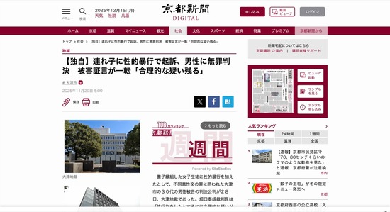 【滋賀】連れ子に性的暴行で起訴された男性、被害は「夢」だったと判明して無罪判決