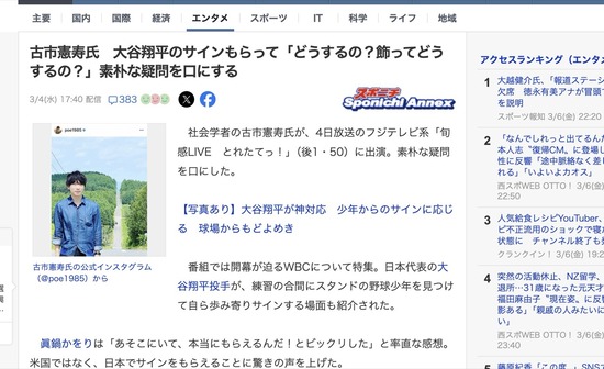社会学者の古市憲寿氏「大谷選手のサイン?貰ってどうするの?家に飾ってどうすんの?」
