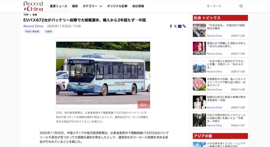 中国の路線バス、中国製EVバスを買ったばかりに大規模運休 672台のバッテリーに不具合