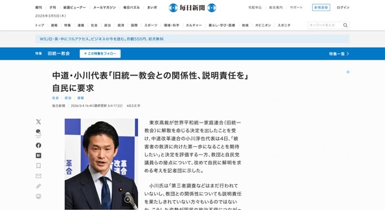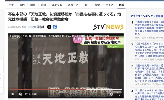 旧統一教会、北海道の「天地正教」に資金を移転へ