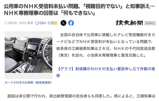 NHK役員「カーナビは視聴目的ではないから受信料許して?それは総務省の管轄なので知らない」
