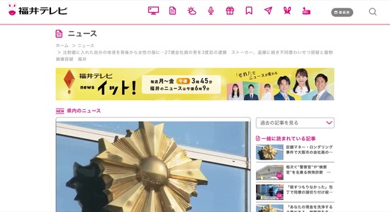 【福井】注射器に入れた自分の体液を背後から女性の服に、27歳会社員を3度目の逮捕