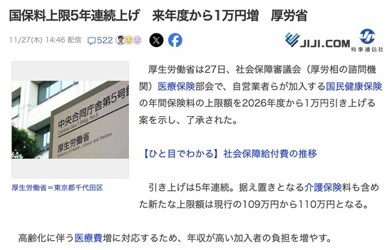 【悲報】国民健康保険料、2026年から引き上げ決定