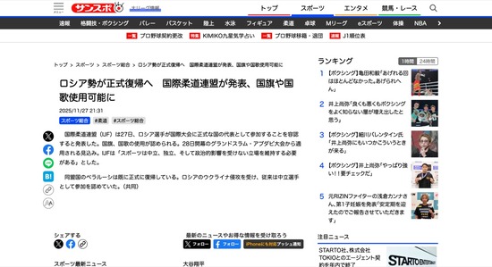 【柔道】ロシア勢、国際大会に正式復帰へ