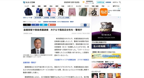 公明党の徳島県議、都内のホテルで派遣型風俗の女性従業員を隠し撮りして逮捕