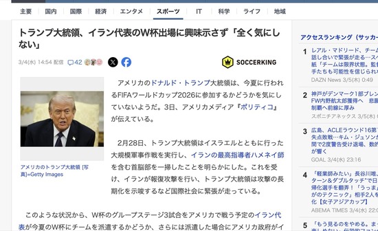 【悲報】トランプ大統領、イラン代表のW杯出場問題に「どうでもいい、だって国としてもう負けてるじゃん」
