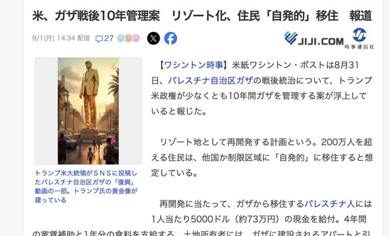 【悲報】トランプ大統領、ガザ地区10年間統治計画が浮上