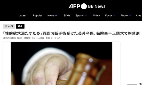 【イギリス】「性的欲求満たすため」わざと両足切断手術を受けた医師、保険金不正請求で2年8か月の拘禁刑