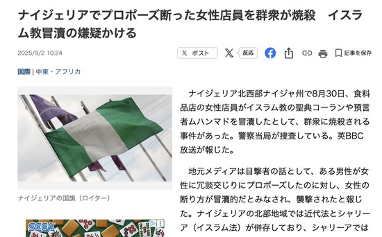 【ナイジェリア】プロポーズを断った女性、群衆に焼かれて死亡