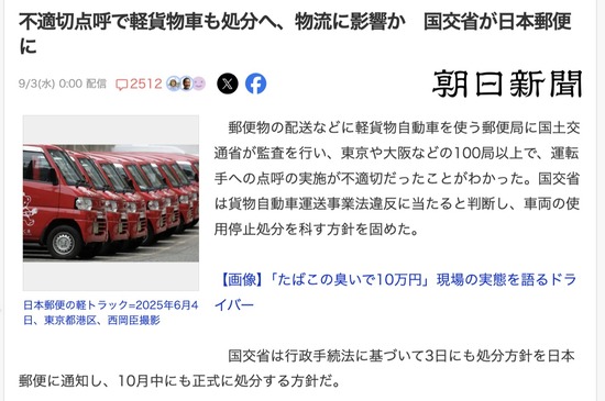 【悲報】日本郵便、軽バンも使用停止へ