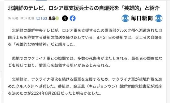 【悲報】ウクライナ派遣された北朝鮮兵(20)、地雷原を走り無事地雷除去任務を遂行して祖国で称賛される