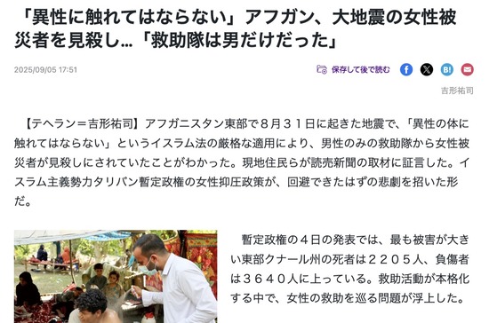 アフガニスタンのタリバン「地震で2000人死亡!国際社会助けて!女はイスラム法に従い触るな救助するな治療するな」