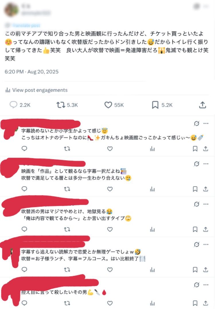 【悲報】マチアプ男「映画観よ!吹替で良い?」→女さんブチ切れ即帰宅