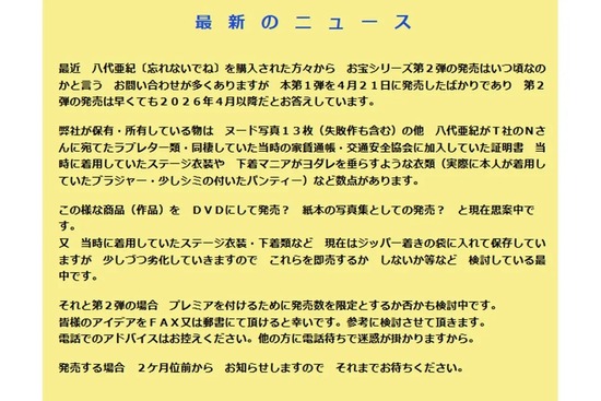 八代亜紀さん「私的ヌード」封入アルバムの販売元が第2弾「少しシミの付いたパンティー」を計画か