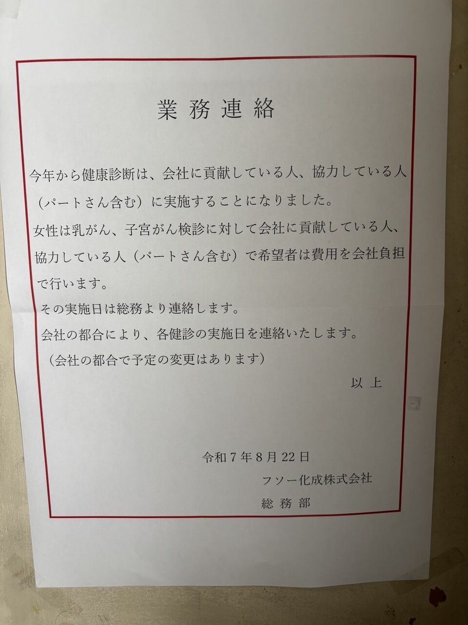 足立区の中小企業さん「今年度より健康診断は会社に貢献している方のみとします」